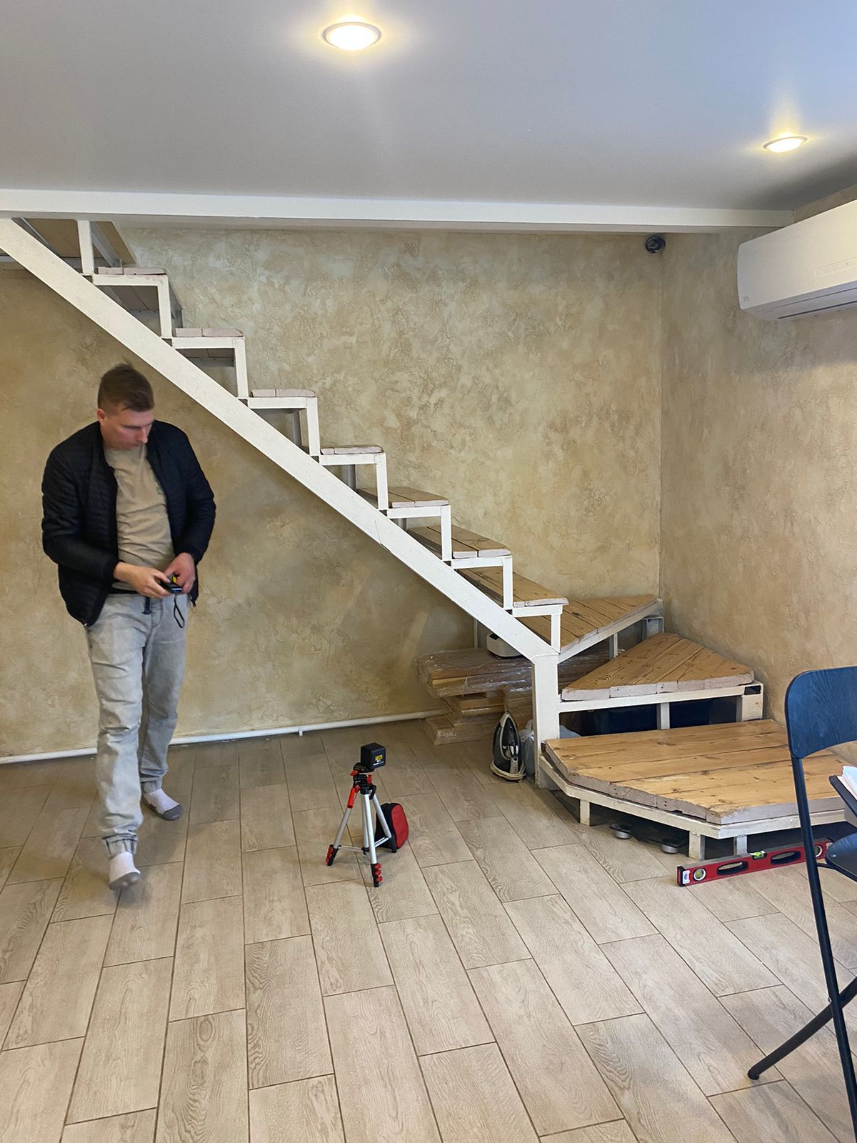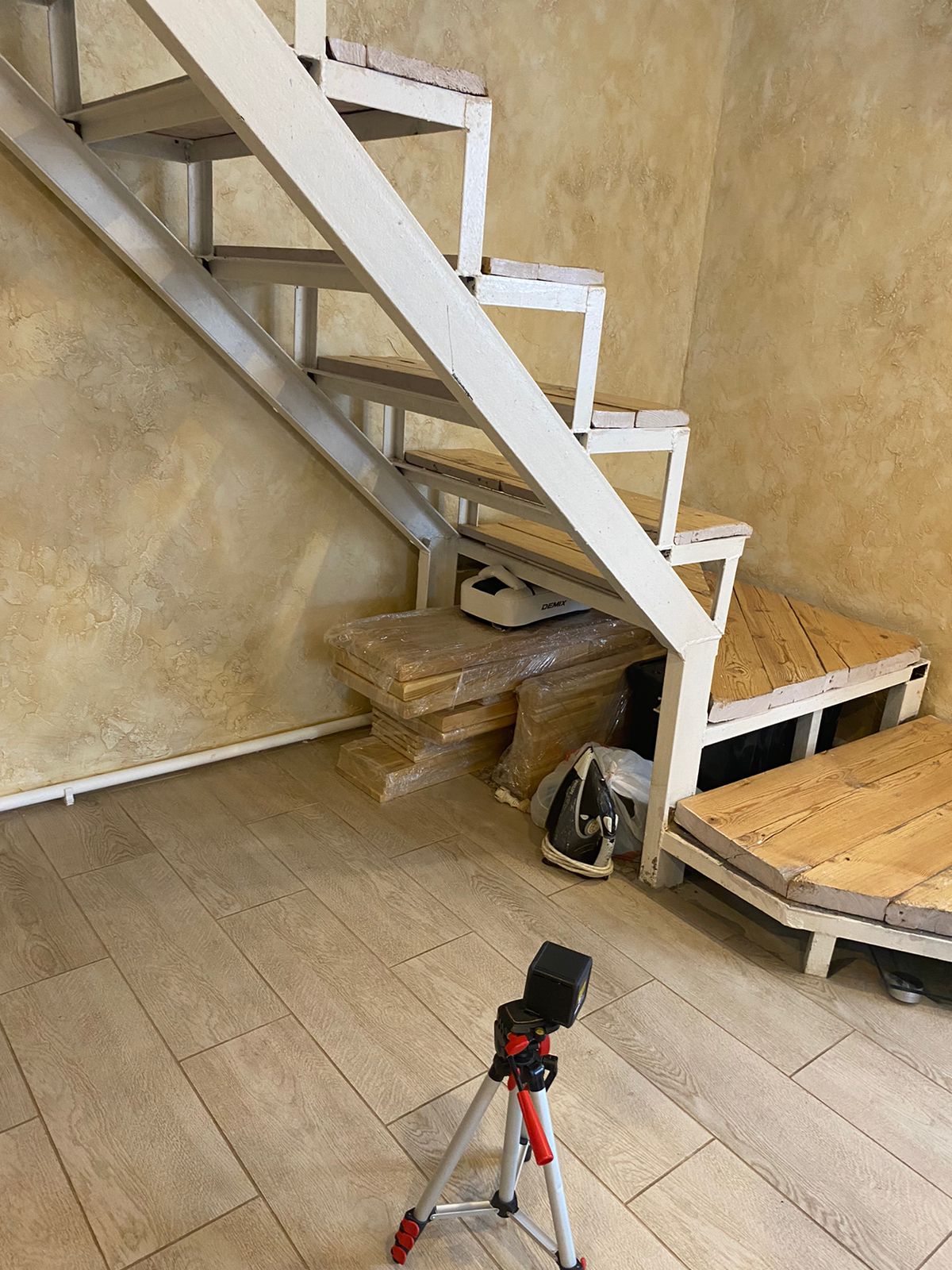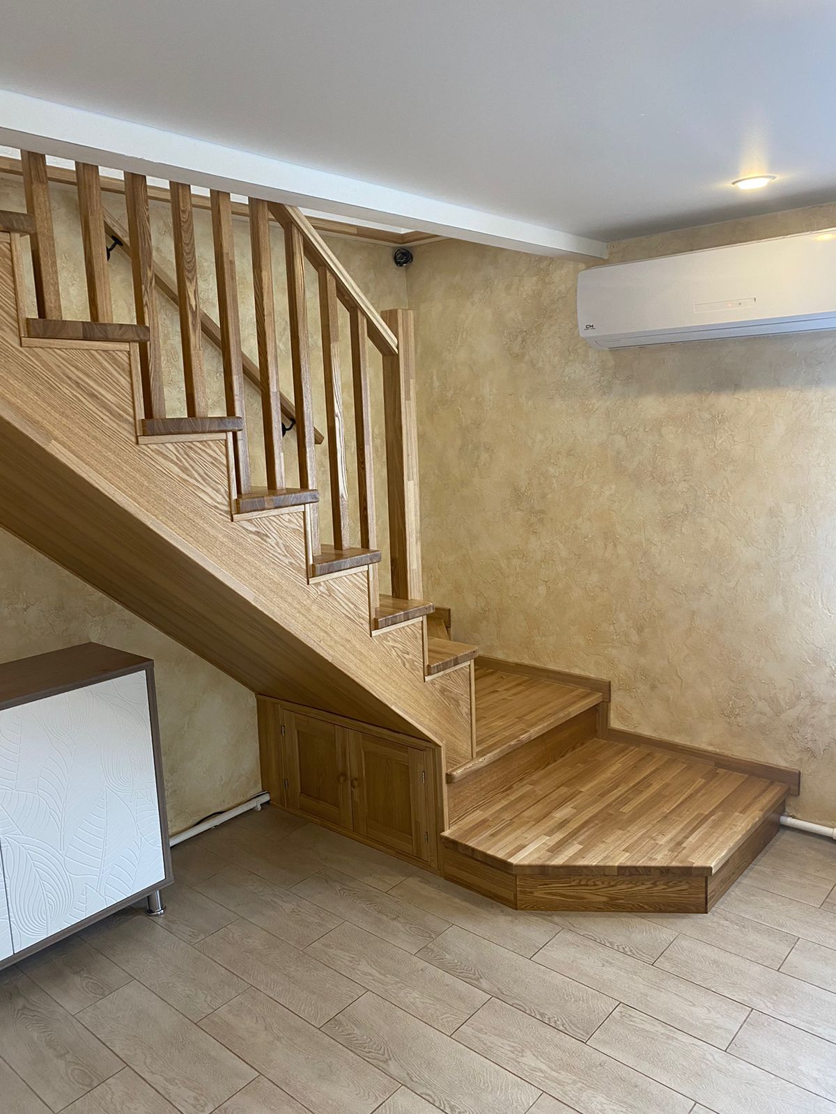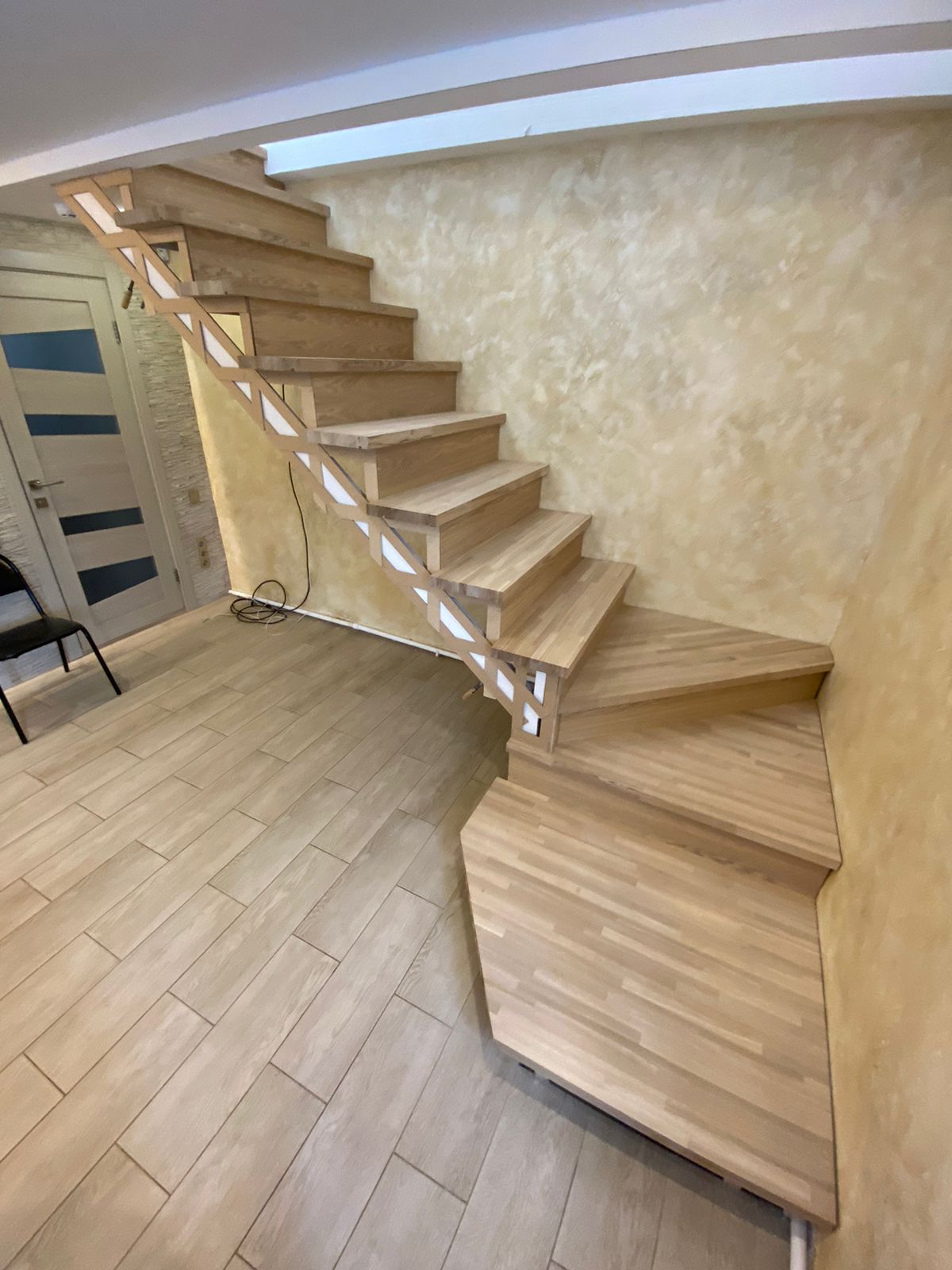 Лестница на Металическом основании. Обшита массивом Ясеня