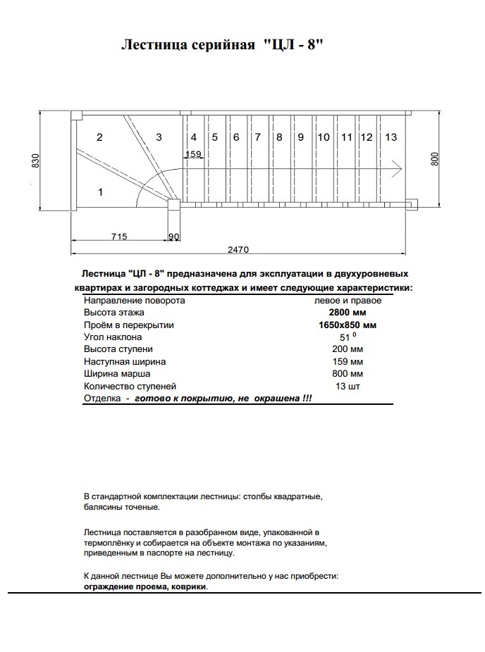 К данной лестнице Вы можете дополнительно у нас приобрести: ограждение проема, обшивку проема и коврики.