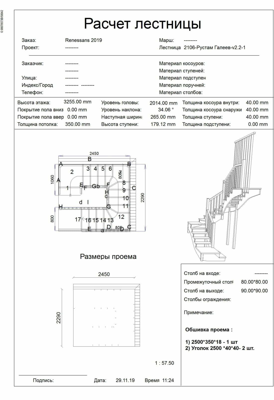 Проект "2106" П-образная лестница на косоуре с забежными ступенями