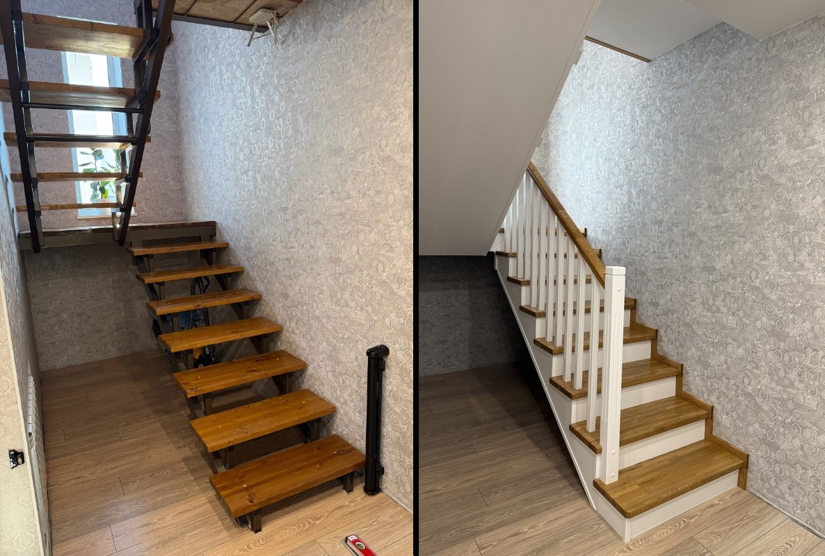 К данной лестнице Вы можете дополнительно у нас приобрести: ограждение проема, обшивку проема и коврики.