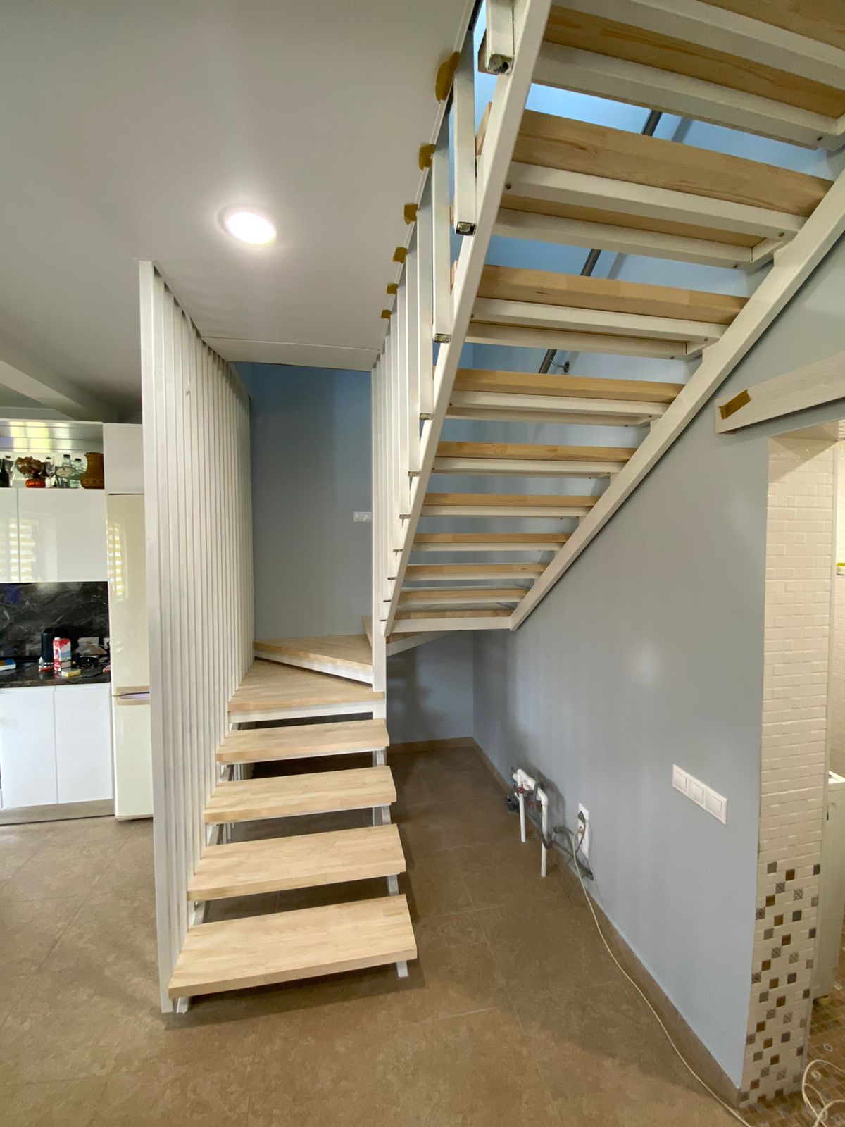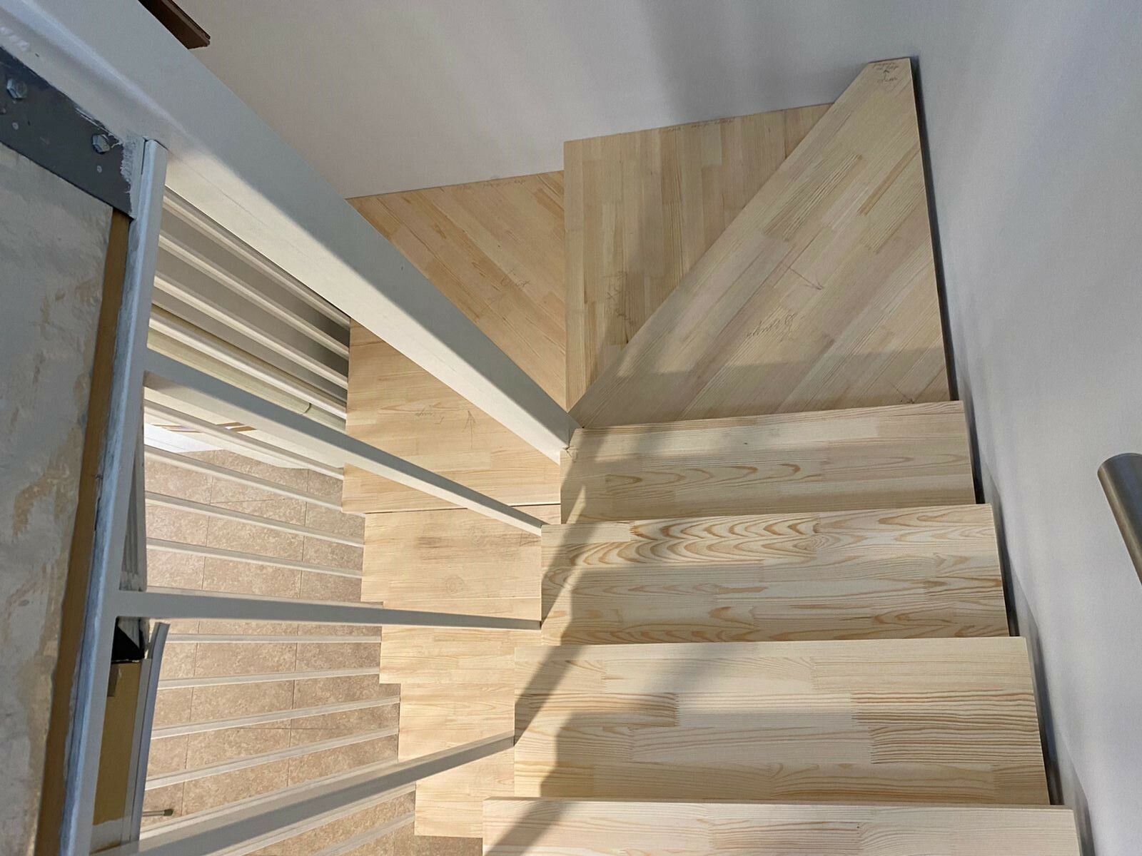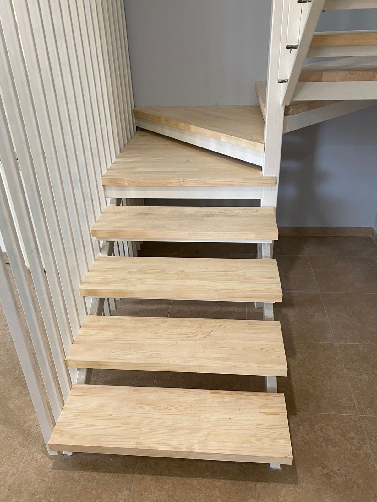 Проект "608-Восточная" (Сосна) Лестница на Металическом основании со ступенями из Сосны
