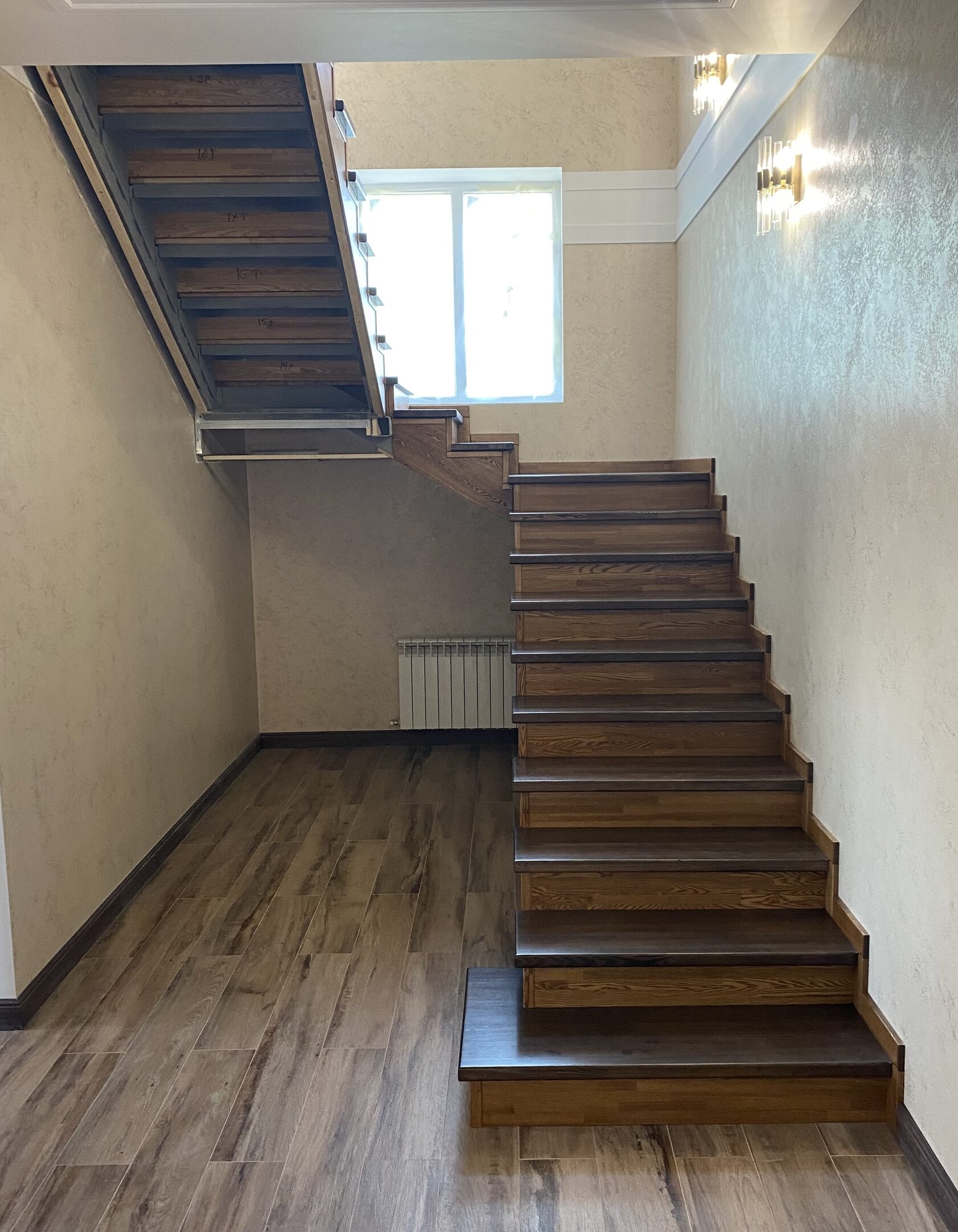 Лестница на Металическом основании. Обшита массиовм Ясеня