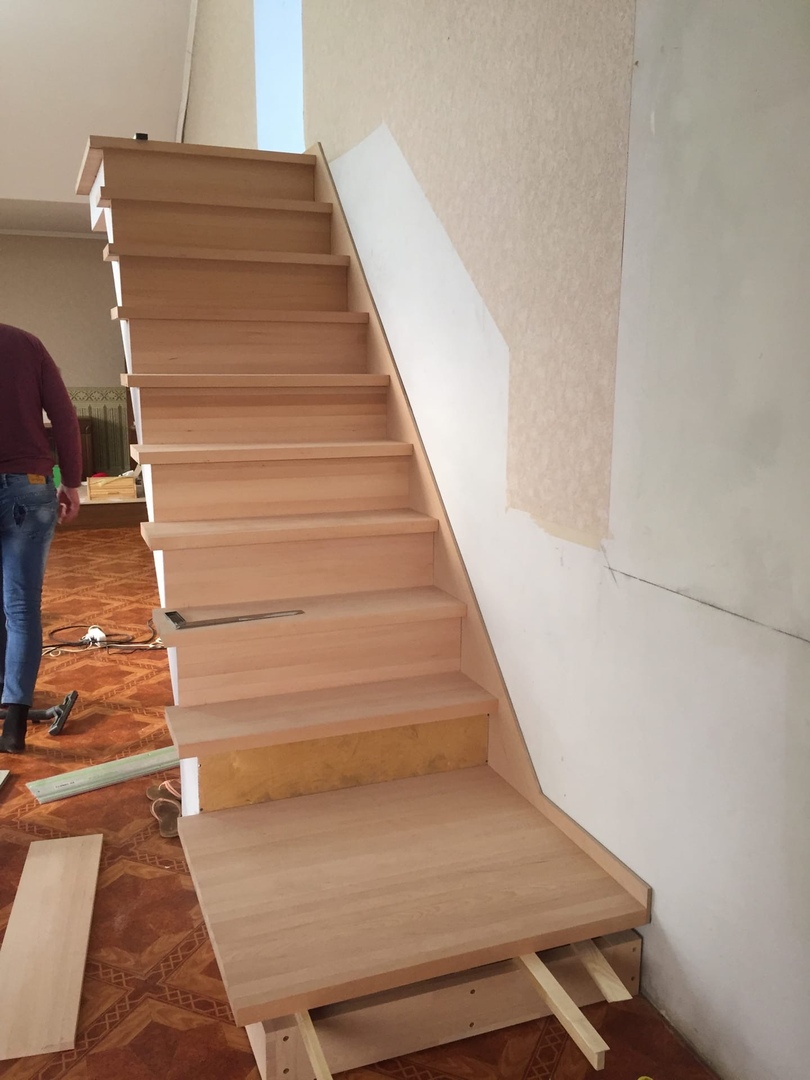 Проект "Кооперативная" (Бук) Обшивка бетонной лестницы ступенями из Бука.Столбы и балясины вытачивали индивидуально.