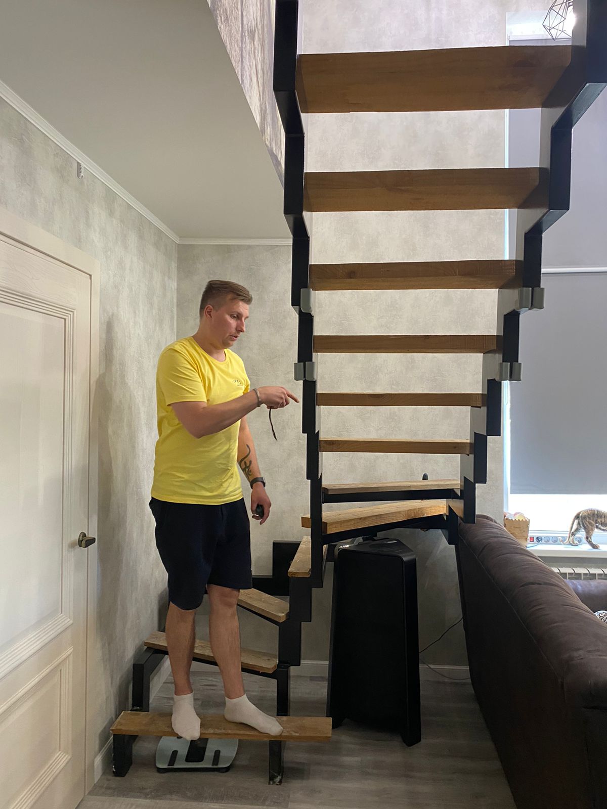 Проект "706-СНТ Простор" (Лиственница) Деревянная лестницана металлическом основании.
