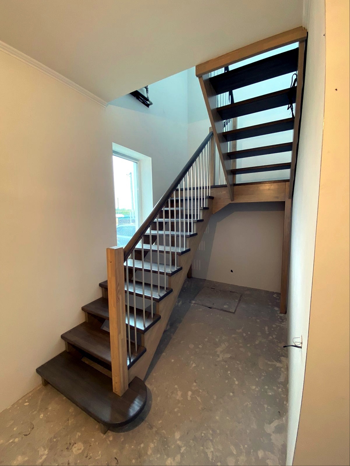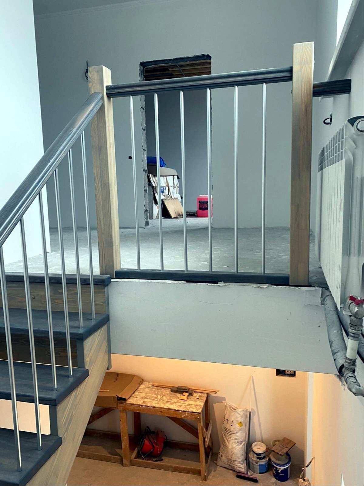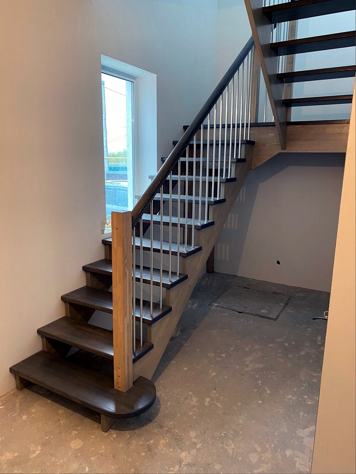 П-Образная лестница на Косоурах с площадкой. Дополнительно установили балюстраду