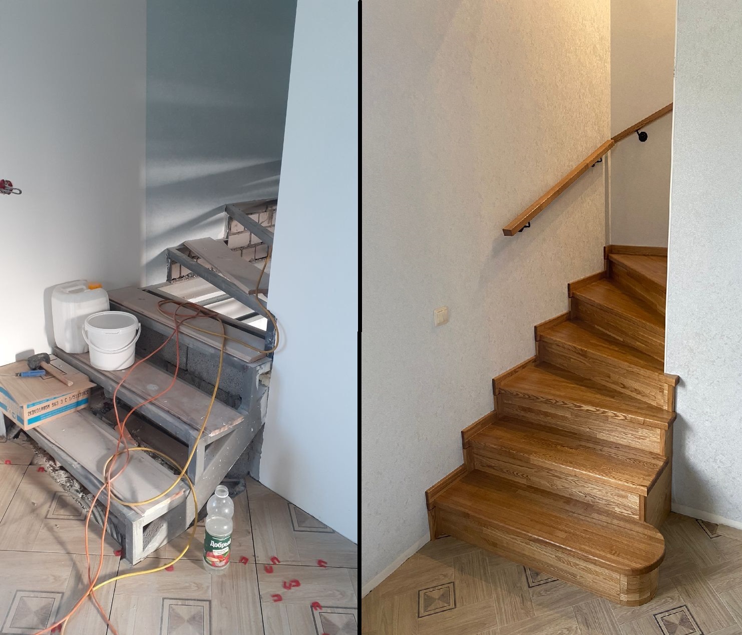 Самарская область п.Эко Парк Лестница на Металическом основании. Обшита массивом Ясеня