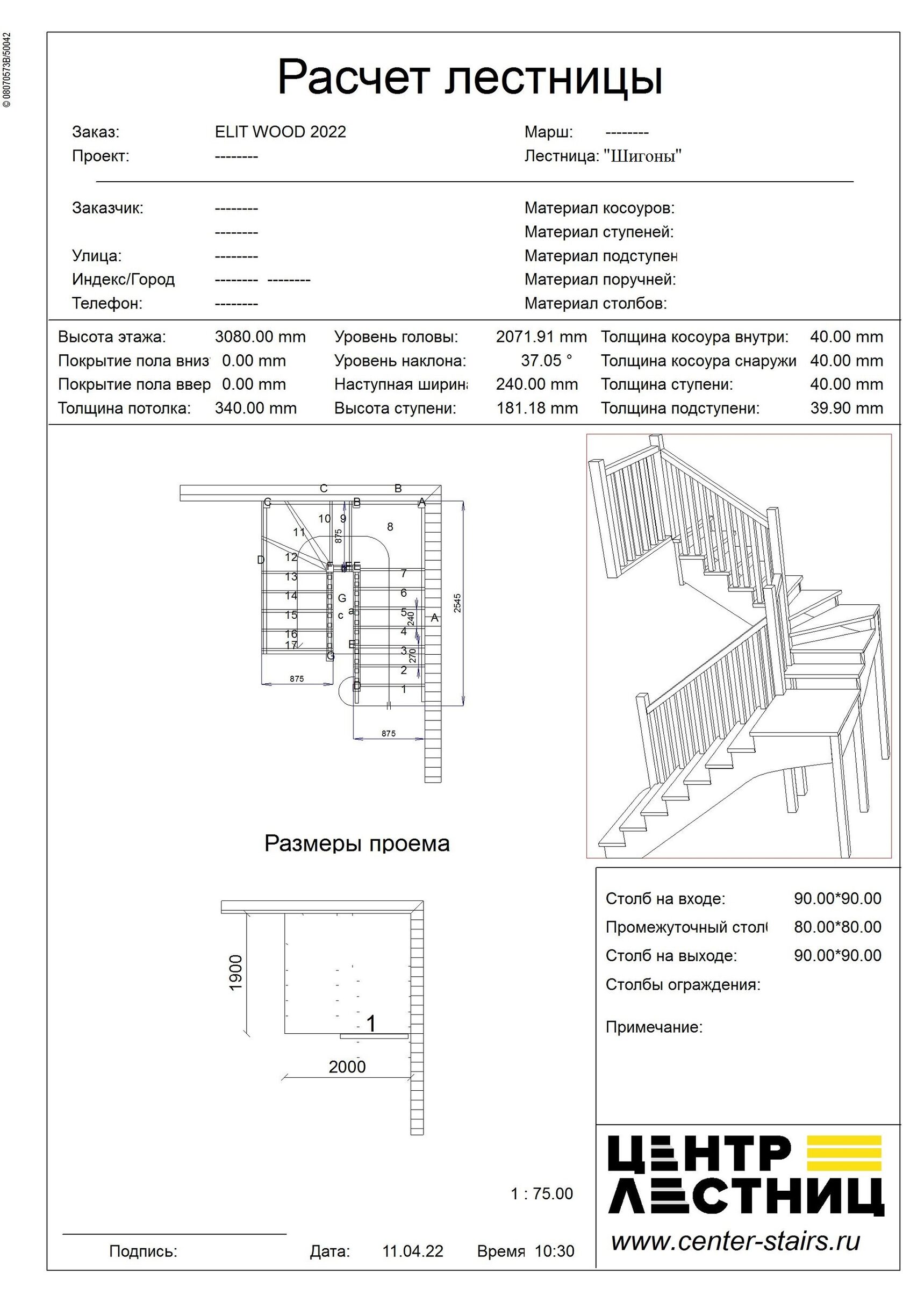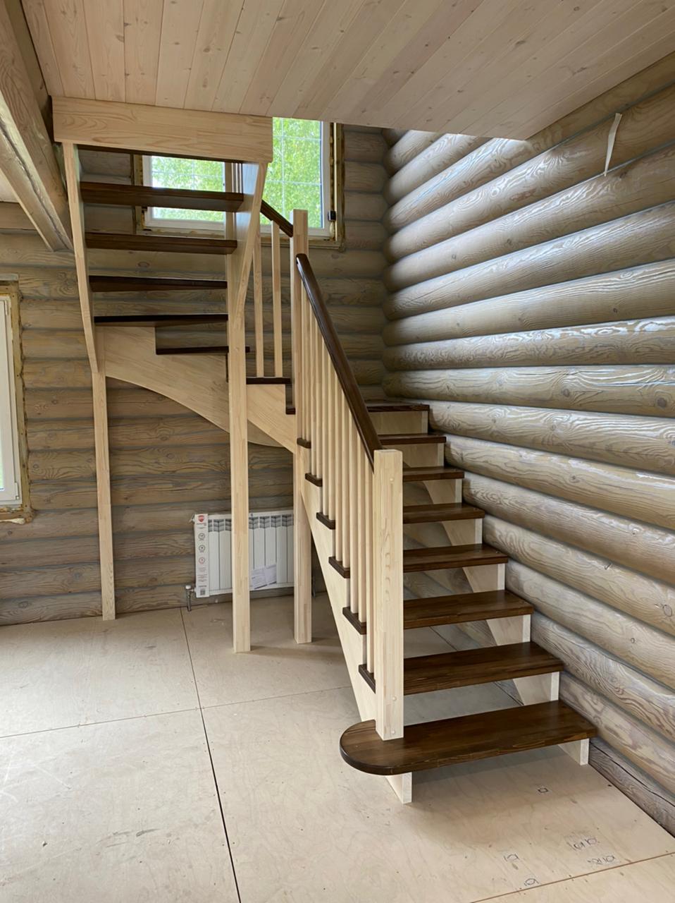 П-образная лестница с площадкой и забежными ступенями на Косоурах