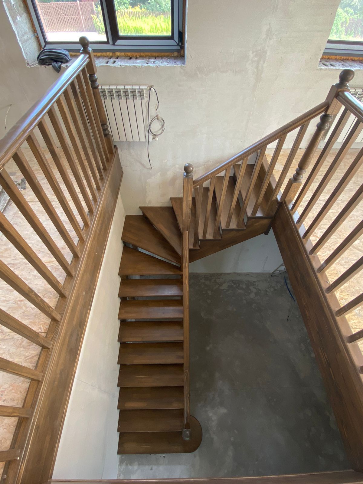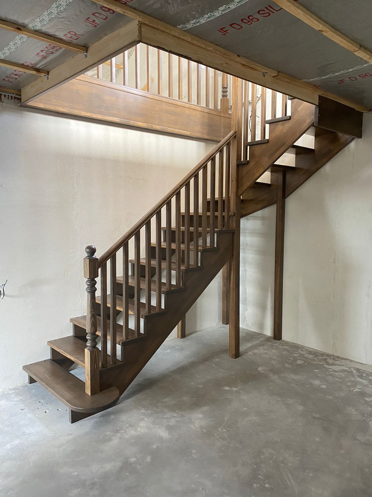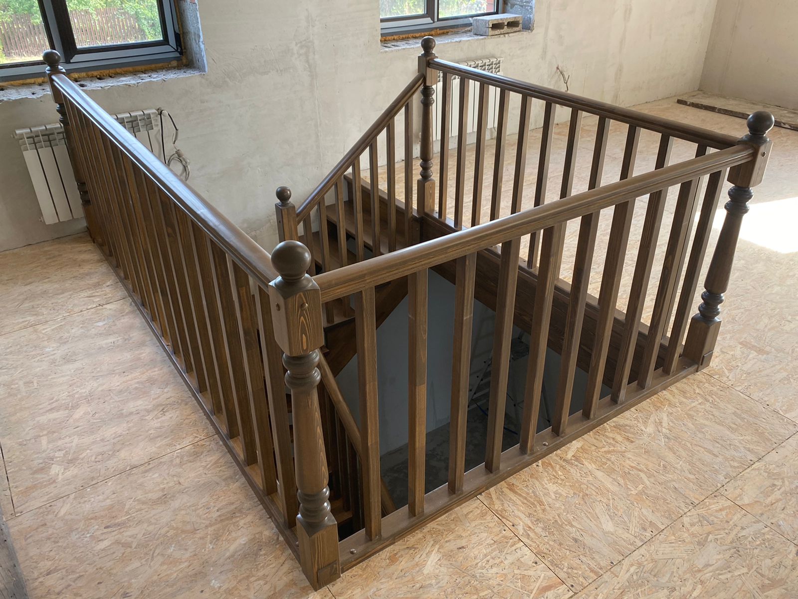 Г-Образная лестница на Косоурах. Дополнительно установили балюстраду и обшили проем по периметру.
