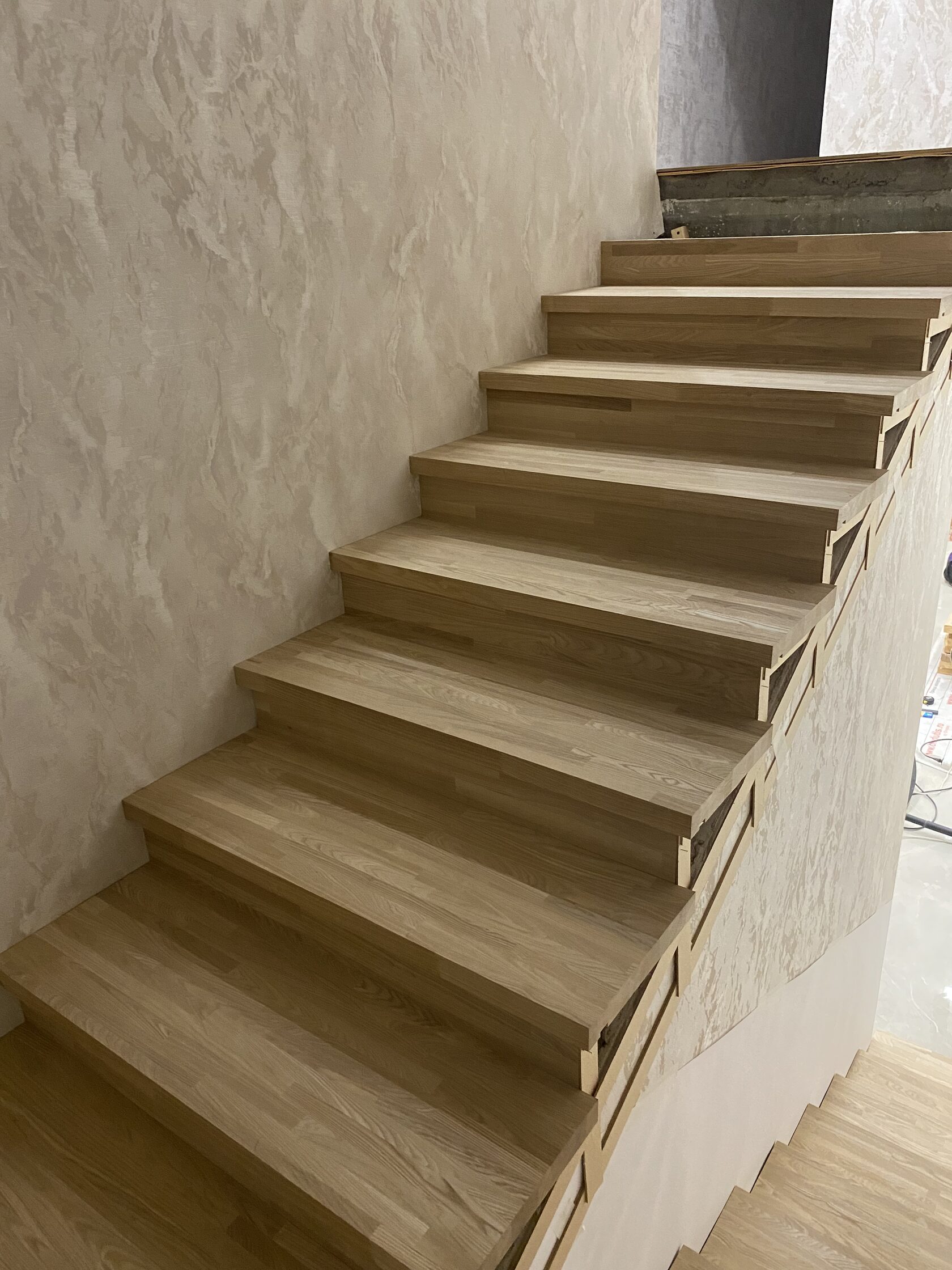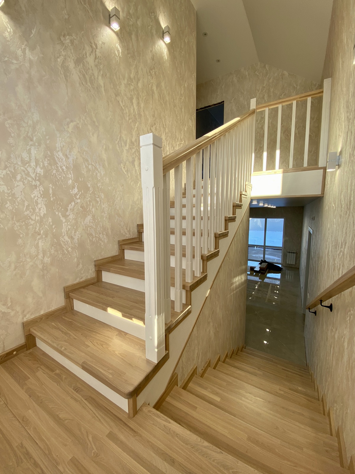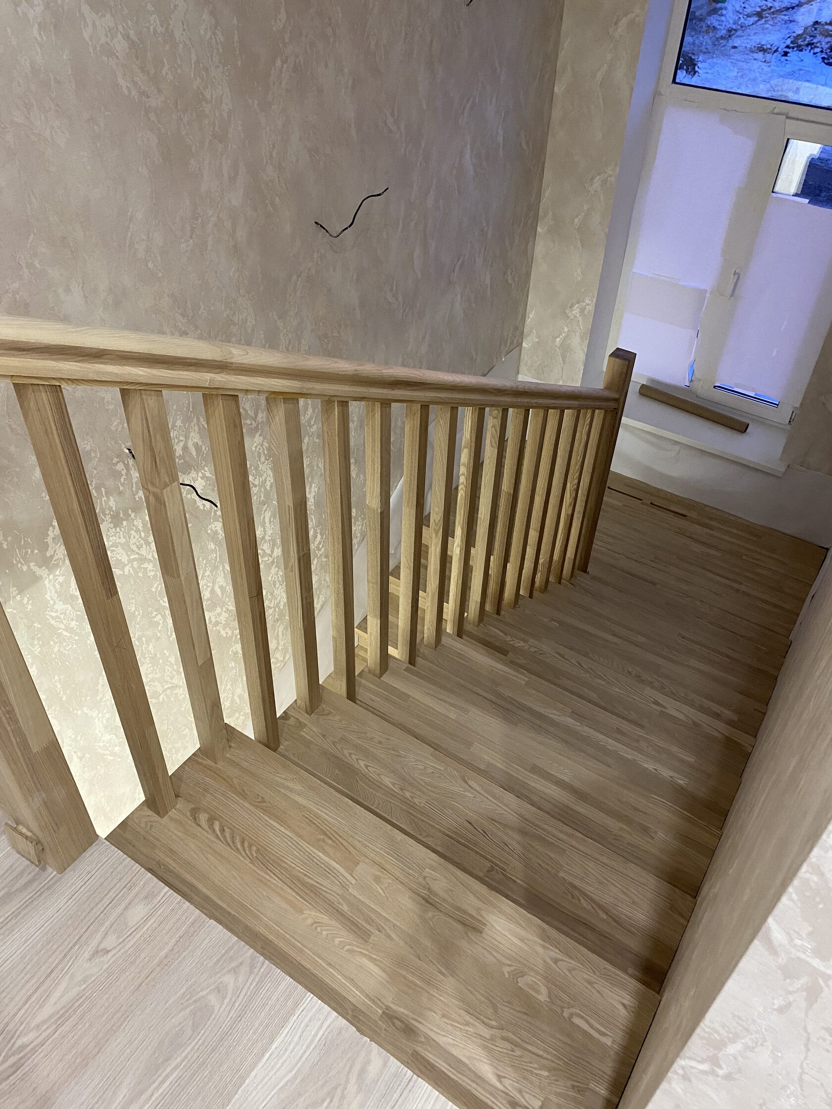 Самарская область п.Красный Яр Лестница на Металическом основании. Обшита массивом Ясеня