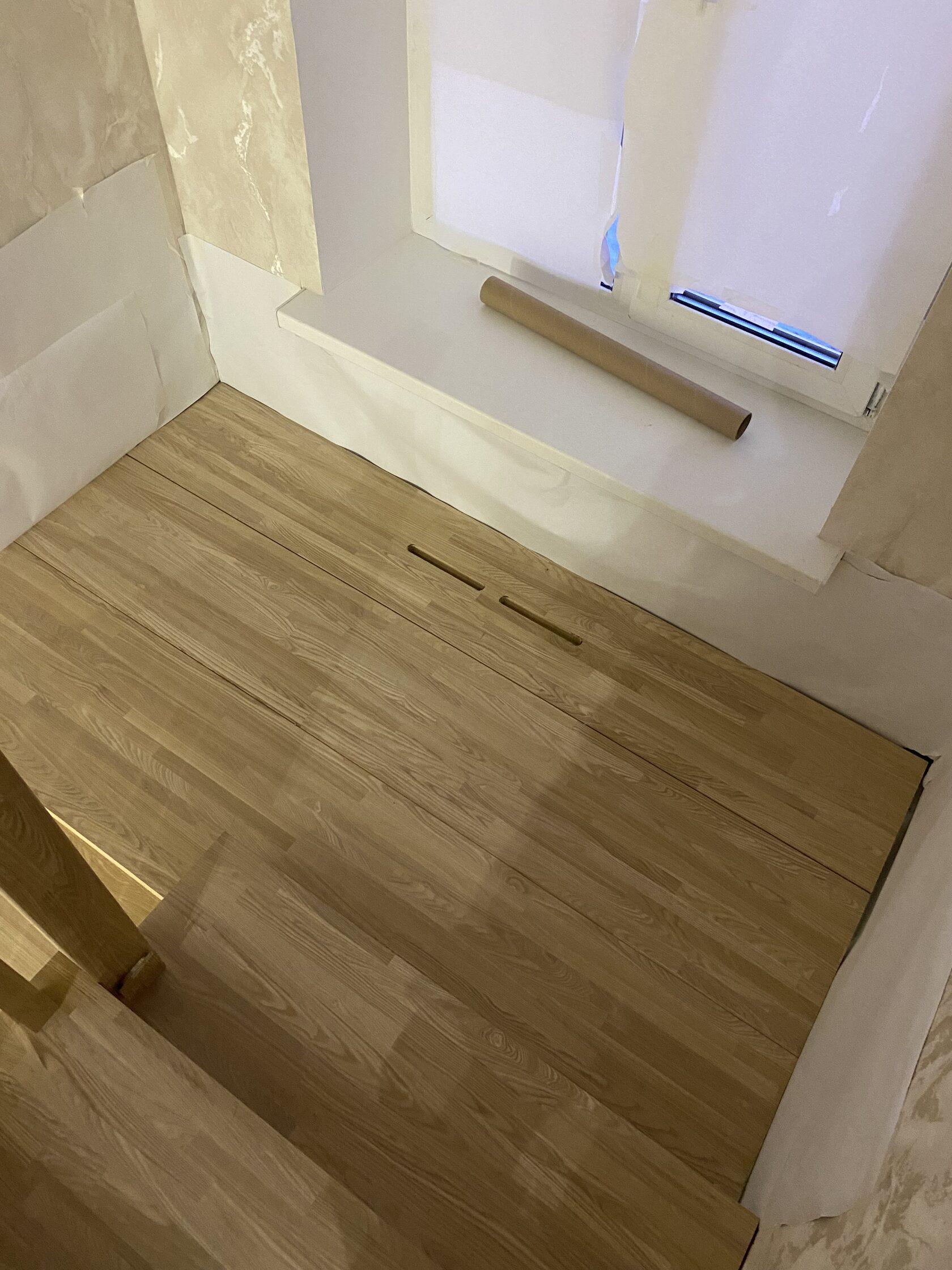 Окраска: Ступени , поручни и плинтус - Varathane 297410 "Antique White" Остальное -Эмаль APL20G Белая